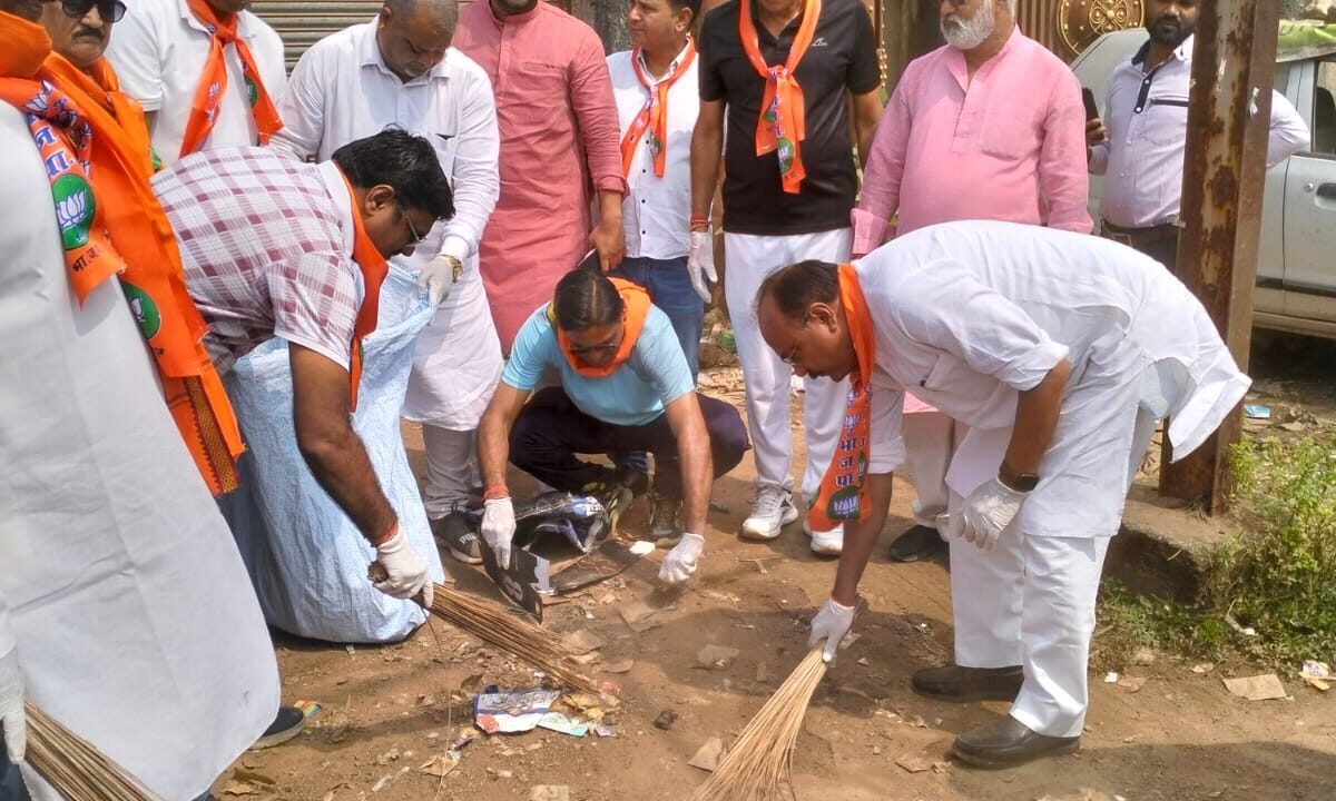 स्वच्छता अभियान पश्चात संकल्प लेकर भाजपा ने दी महात्मा गांधी को स्वच्छांजलि