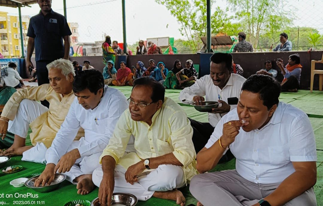 ट्राई सिटी एक्सप्रेस। न्यूज -श्रमिको के सम्मान में स्वच्छता दीदीयों के साथ बोरे बासी खाकर विधायक,महापौर एव आयुक्त ने किया मजदूरों का सम्मान: विधायक अरुण