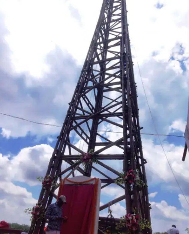 कठिया बेमेतरा में दुनिया का सबसे ऊंचा बांस का टावर, वजन 7400