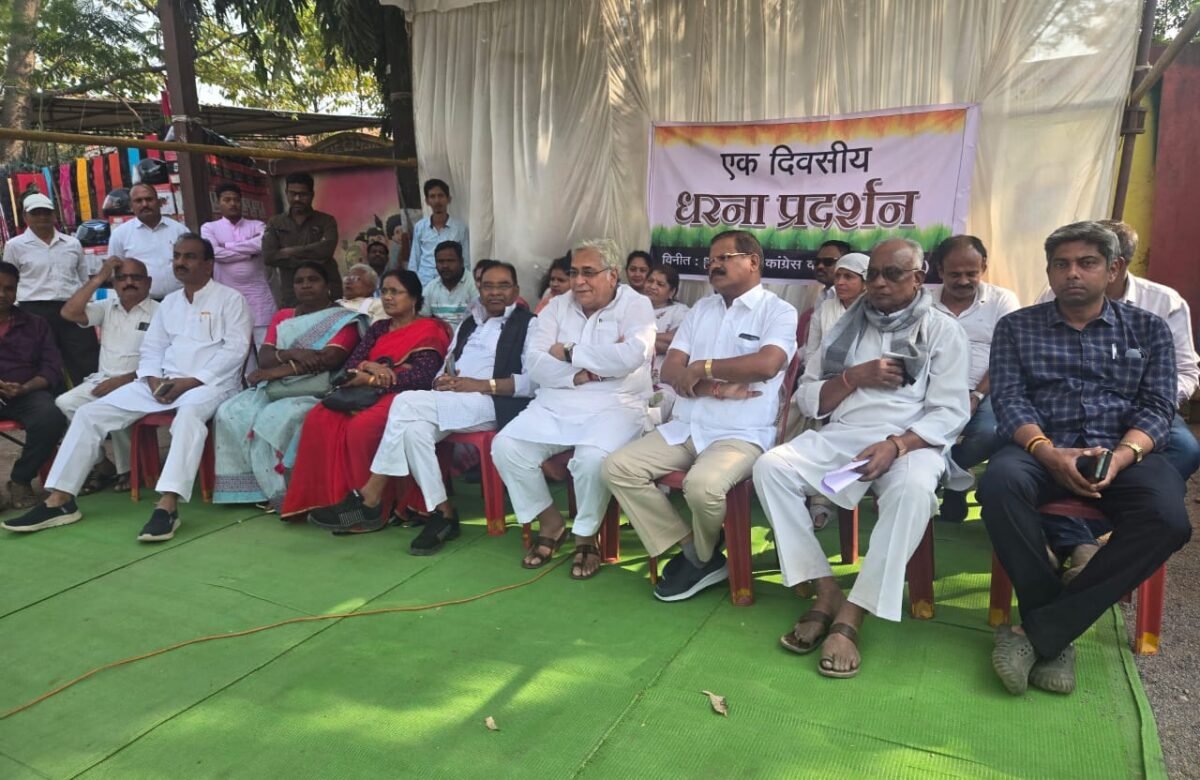 दुर्ग में कांग्रेसियों का एक दिवसीय धरना , किसानों के साथ अब