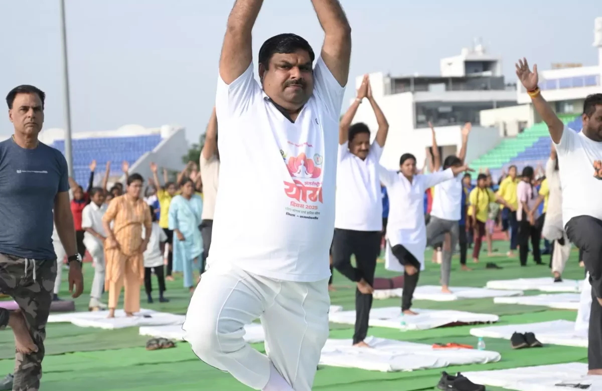 ट्राई सिटी एक्सप्रेस। न्यूज दुर्ग। 11वें अंतर्राष्ट्रीय योग दिवस के अवसर पर राजनांदगांव के दिग्विजय स्टेडियम में आयोजित योगाभ्यास कार्यक्रम में बतौर मुख्य अतिथि विधायक