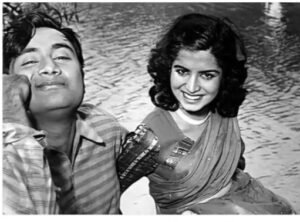 एक फिल्म के दृश्य में देवानंद के साथ कल्पना कार्तिक।