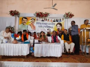 नगर पंचायत साजा के सामुदायिक भवन में विधानसभा स्तरीय SIR की कार्यशाला का आयोजन हुआ, इसमें मुख्य रूप से दुर्ग सांसद विजय बघेल,साजा विधायक ईश्वर साहू, बेमेतरा प्रभारी हर्षिता पांडे, भारतीय जनता पार्टी के मंडल, जनपद, ब्लॉक से बड़ी संख्या में कार्यकर्ता गण उपस्थित रहे, इस कार्यशाला बैठक में एसआईआर को लेकर कई बिंदुओं पर विषय वार चर्चा की गई, इस बैठक में साजा विधानसभा के मंडल अध्यक्ष, जनपद अध्यक्ष, महिला मोर्चा के पदाधिकारियों की उपस्थिति में यह गरिमामय आयोजन हुआ, इस आयोजन में मुख्य वक्ता सांसद विजय बघेल और हर्षिता पांडे ने मार्गदर्शन दिया, ईश्वर साहू ने आए हुए अतिथियों का स्वागत फूल माला पहनाकर किया,SIR के काम में नाम जोड़ने और हटाए जाने को लेकर पार्टी के लोगों से सहयोग करने की अपील की। दुर्ग सांसद विजय बघेल ने एसआई आर को लेकर जानकारी दी यह एक महत्वपूर्ण दायित्व है जिसे पूरी निष्ठा और लगन से किया जाना चाहिए, बेमेतरा प्रभारी हर्षिता पांडे ने मंडल, ब्लॉक और जनपद स्तर के आए हुए पदाधिकारी की उपस्थिति पर जानकारी मांगी, और आने वाले समय में लगन और मेहनत से काम करने , एकजुट होने के लिए आग्रह किया।