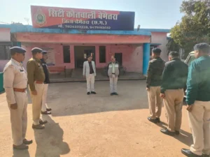 बेमेतरा। वरिष्ठ पुलिस अधीक्षक बेमेतरा रामकृष्ण साहू (भा.पु.से.) ने थाना सिटी कोतवाली बेमेतरा का औचक निरीक्षण कर जायजा लिया। उन्होंने उपस्थित अधिकारी/ कर्मचारियों का मनोबल बढाये जाने के साथ कानून व सुरक्षा व्यवस्था को सुदृढ बनाये रखते हुए बेहतर पुलिसिंग के बारे में निर्देश दिया गया। उन्होंने जनता की समस्याओं को गंभीरता से सुनने और समाधान के लिए आवश्यक दिशा-निर्देश दिए।