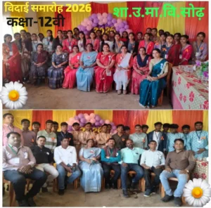 ट शासकीय उच्चतर माध्यमिक शाला सोढ में विदाई समारोह 2026 का आयोजन आज दिनांक 16/2/2026 सोमवार को कक्षा ग्यारहवीं के विद्यार्थियों के द्वारा कक्षा 12वीं के विद्यार्थियों को परंपरागत तरीके से विदाई दिया गया इस कार्यक्रम में कक्षा 11वीं के विद्यार्थियों ने कार्यक्रम का शुभारंभ मां सरस्वती मैया की पूजा अर्चना कर किया, इसके पश्चात संस्था के प्राचार्य महोदया सुश्री भावना धाबू एवं प्रभारी प्रधान पाठक वरुण कुमार मार्कण्डेय, शासकीय उच्चतर माध्यमिक विद्यालय सोढ, शासकीय पूर्व माध्यमिक शाला सोढ के समस्त शिक्षक शिक्षिकाओं अखिल भारतीय विद्यार्थी परिषद से बृजेश शर्मा और स्कूल के पूर्व छात्र ललित बंजारे ,फुलेश्वर सिंह एवं कक्षा 12वीं के विद्यार्थियों का हार्दिक अभिनंदन और स्वागत किया गया, कक्षा 11वीं के स्टूडेंट द्वारा विभिन्न प्रकार के खेलों का प्रतियोगिता और संस्कृति कार्यक्रम गीत और छोटे- छोटे प्रेरणादायक भाषण प्रस्तुत किया गया, गतिविधियों को चिट रखकर कक्षा बारहवीं के विद्यार्थियों से कराया गया ,उपहार देकर ,उनके उज्जवल भविष्य की कामना कर विदाई की गई, परीक्षा के पूर्व विद्यार्थियों को उनकी सफलता की कामना करते हुए बधाइयां दी गई संस्था के व्याख्याता योगेंद्र वर्मा, एवं शिक्षक यशपाल सिंह राजपूत ने सभी छात्रों को परीक्षा के पूर्व सफल होने का तरीका समझाए आखिर में संस्था की आचार्य मैडम द्वारा बच्चों के उज्जवल भविष्य की कामना के साथ उन्हें उपहार प्रदान किया गया, कार्यक्रम आयोजन के बीच सभी छात्र छात्राओं ने समस्त शिक्षकों से आशीर्वाद लिया और शिक्षकों ने उन्हें जीवन में आगे बढ़ाने के महत्वपूर्ण सुझाव दीजिए, इस आयोजन में बच्चों ने संस्था की व्याख्याता स्वर्ण लता द्विवेदी सुश्री गायात्री सिंहा, श्रीमती चंदा महाजन, श्रीमती यामिनी वर्मा के निर्देशों का पालन करते हुए बच्चों ने मंत्रमुग्ध प्रस्तुति दी। फिर तुरंत ही कक्षा 12वीं के विद्यार्थियों के साथ ग्रुप फोटो लेकर उन्हें शिक्षिका सुश्री निधि शर्मा व्याख्याता द्वारा प्रवेश पत्र प्रदान किया गया इस विदाई समारोह के कार्यक्रम में कामता प्रसाद साहू, संतोष टंडन, कमल नारायण साहू, मयंक टंडन, भागीरथी देवांगन, रवि वर्मा, श्रीमती ऐश्वर्या परगनिया, सुश्री सुरेखा भतपहरे, हृदय राम साहू, ताइक्वांडो प्रशिक्षक योगेश कुमार तिवारी, व्यास नारायण, संजय टंडन, पुनाराम सोनवानी, की गरिमा में उपस्थिति में यह कार्यक्रम संपन्न हुआ।