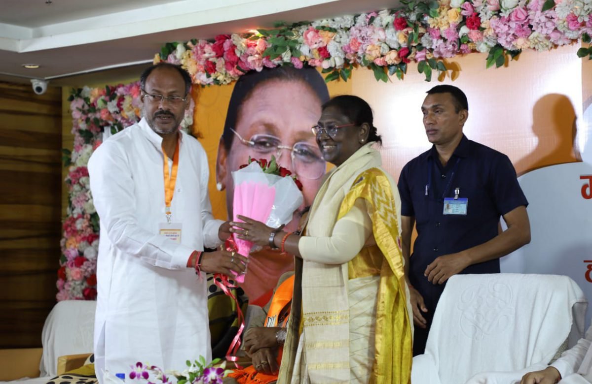 रायपुर आगमन पर श्रीमती मुर्मू का अभिनंदन करते भाजपा जिलाध्यक्ष जितेंद्र वर्मा दुर्ग। राष्ट्रपति पद के लिए एनडीए की तरफ से उम्मीदवार श्रीमती द्रौपदी मुर्मू के