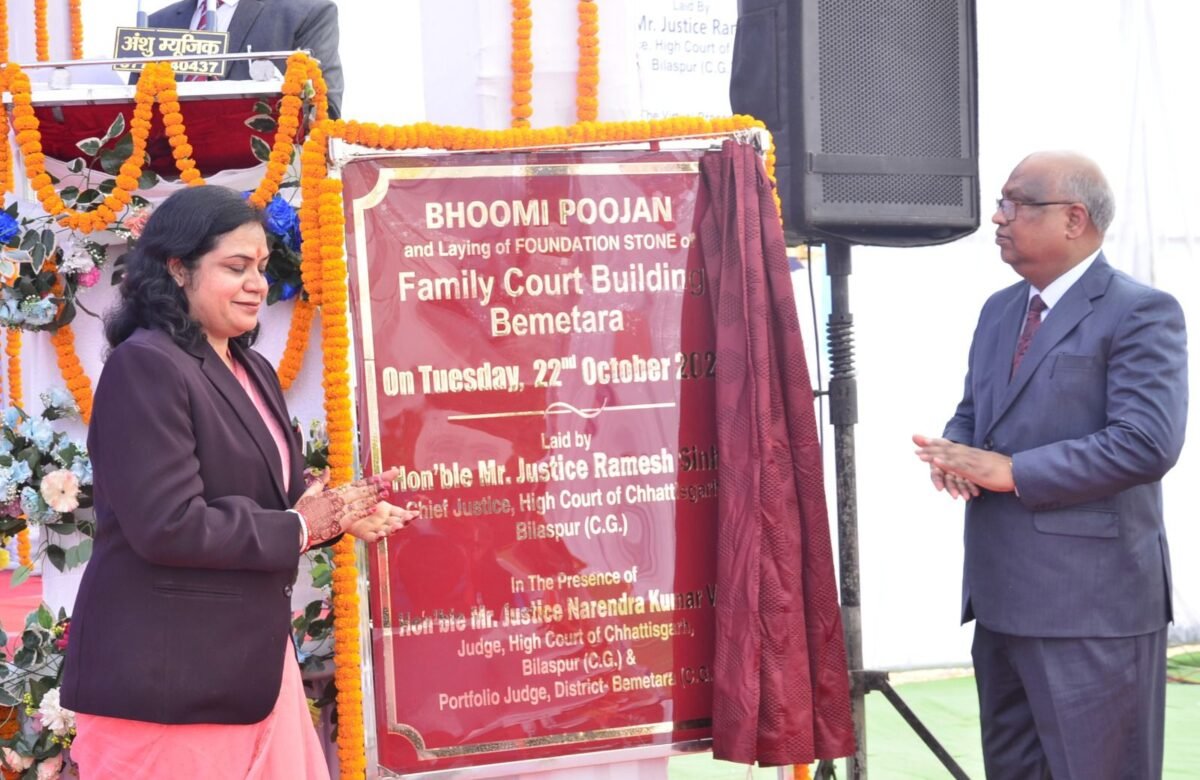 ट्राई सिटी एक्सप्रेस। न्यूज बेमेतरा। न्यायालय के नए भवन का छत्तीसगढ़ उच्च न्यायालय बिलासपुर के मुख्य न्यायाधिपति रमेश सिन्हा ने भूमिपूजन व शिलान्यास किया। 233.92