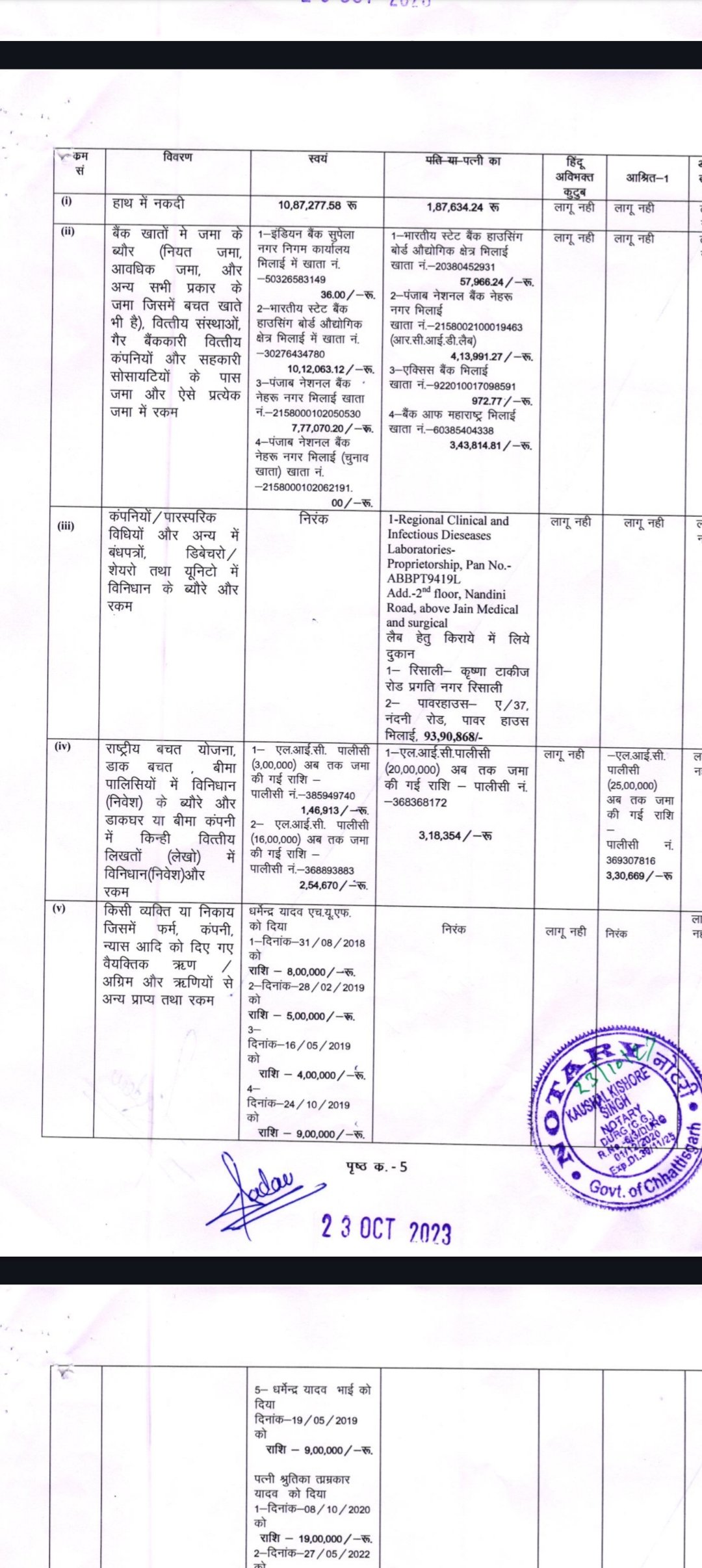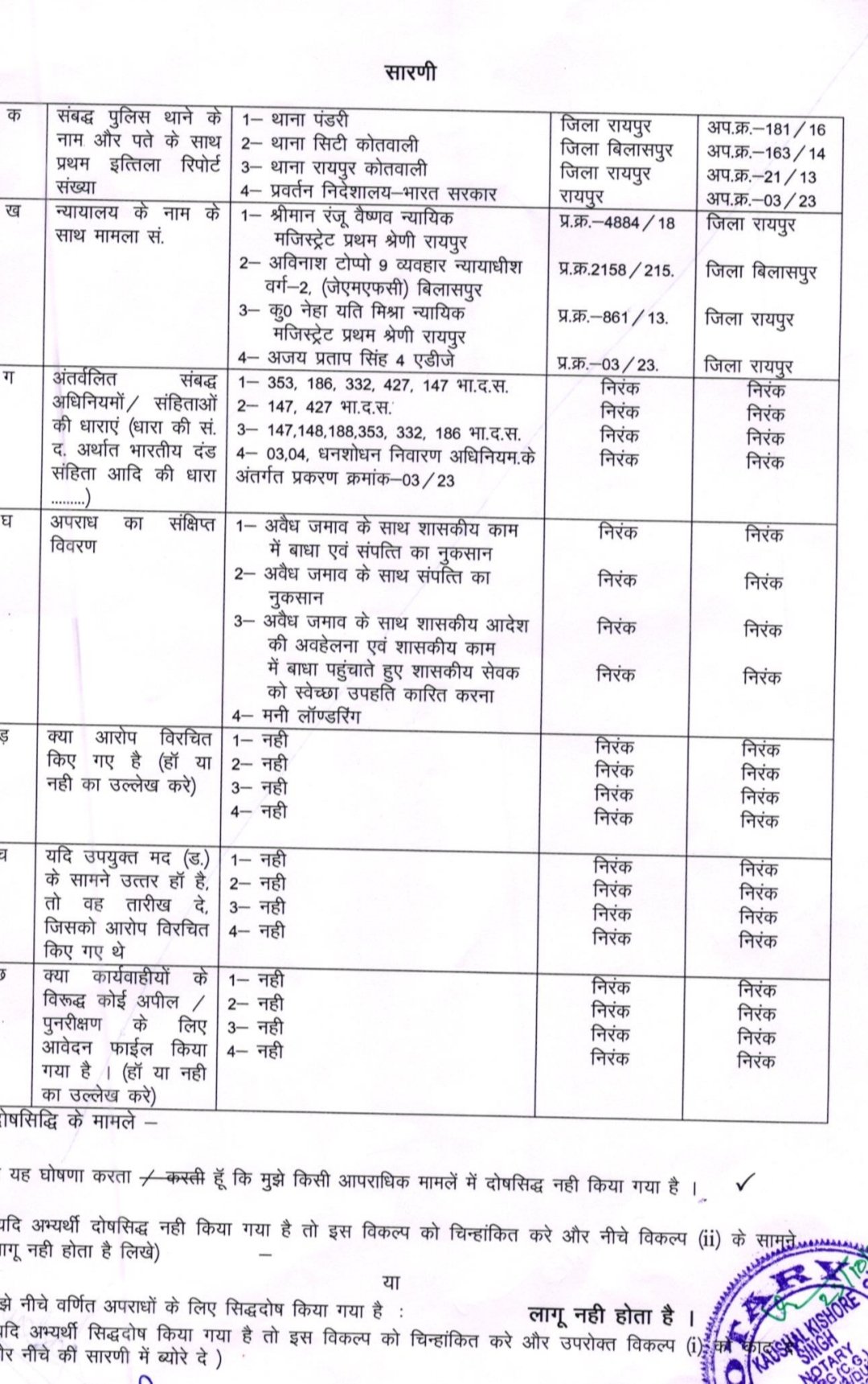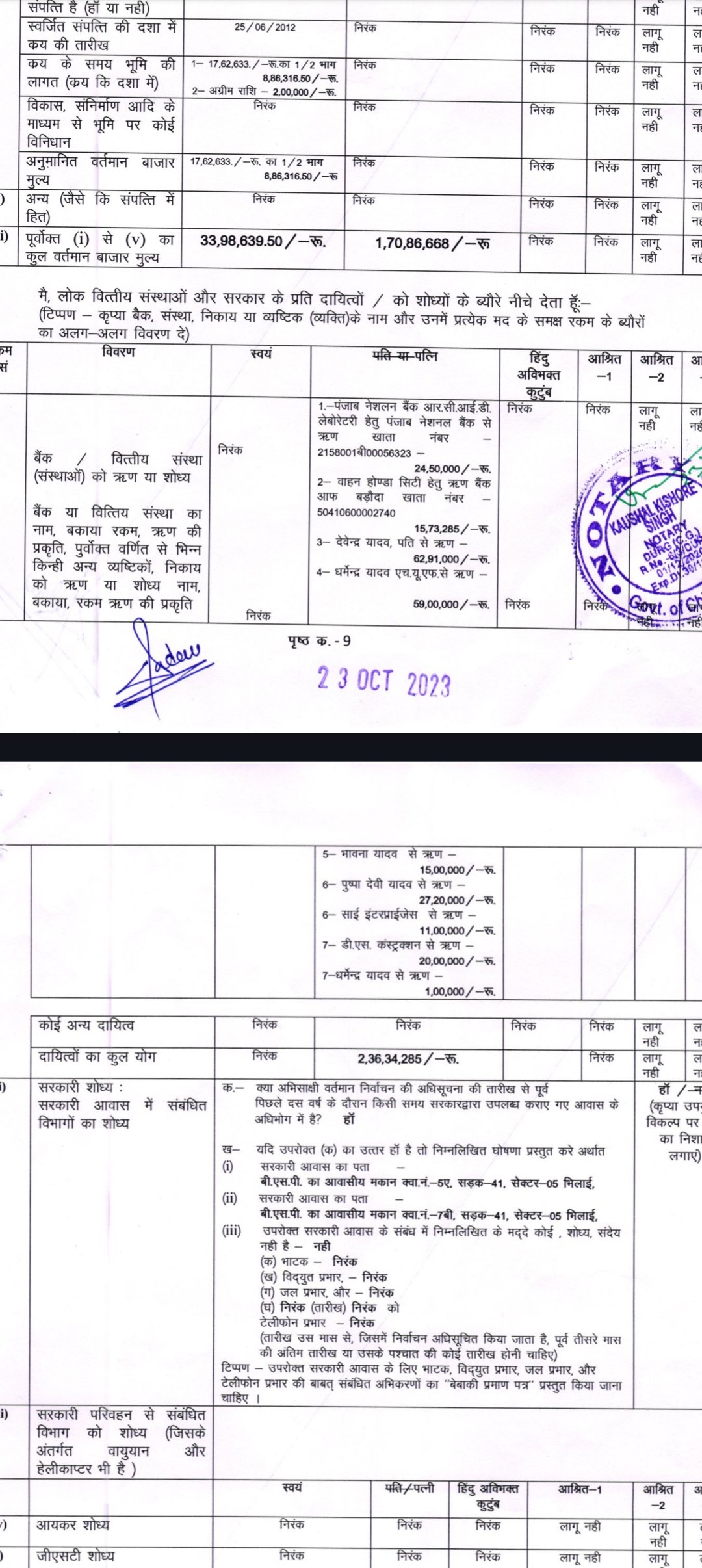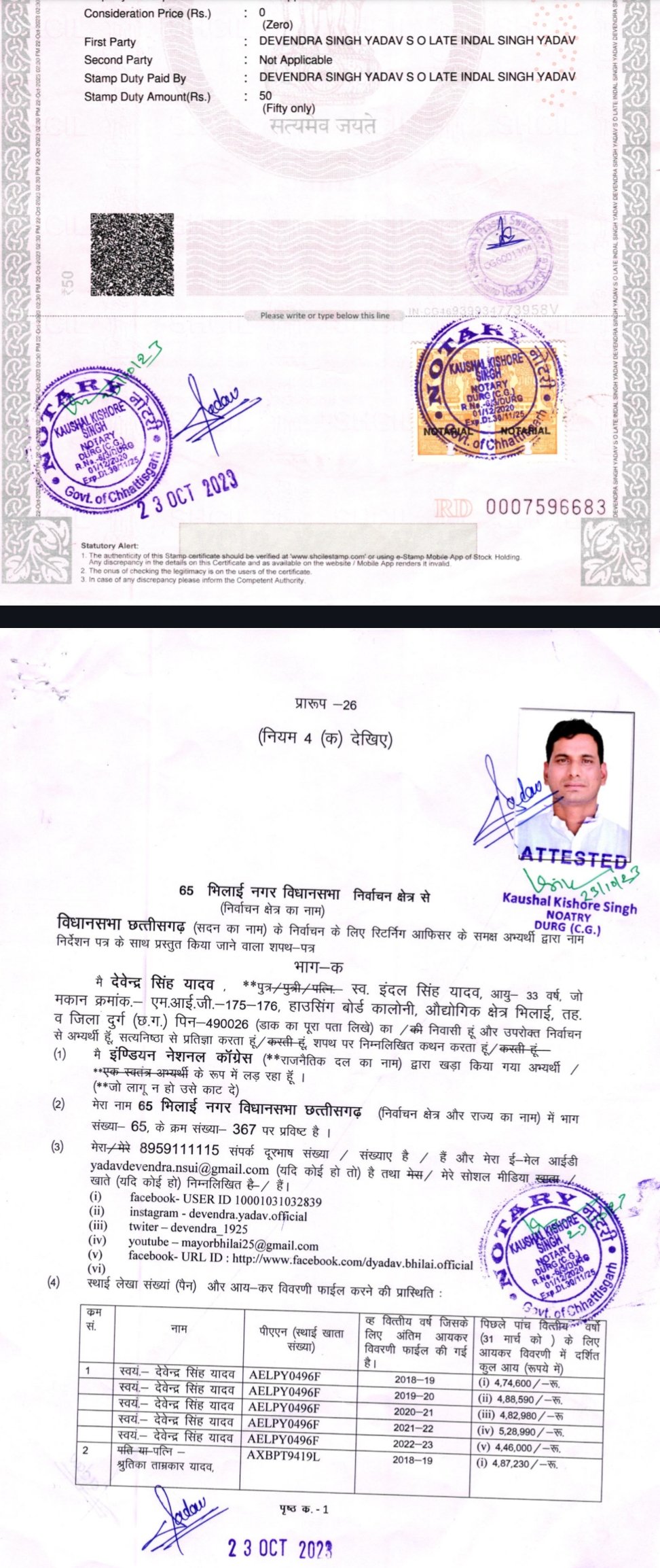 भिलाई नगर से कांग्रेस प्रत्याशी और वर्तमान विधायक देवेंद्र यादव ने आयोग के समक्ष अपनी संपत्ति और अपराधिक रिकार्ड की जानकारी शपथ पत्र के माध्यम से दी है। इसमें उन्होंने आयोग को बताया है कि उनके नाम मनी लॉन्ड्रिंग समेत 4 अपराध दर्ज हैं। इन मामलों में सुनवाई चल रही है। उन्होंने आयोग को बताया कि रायपुर और बिलासपुर में तीन मामले अलग अलग धारा 147, 186, 353, 332, 427 सहित अन्य में अपराध पंजीबद्ध है, जिन पर सुनवाई जारी है। एक में भी अंतिम फैसला नहीं आया है। ईडी केंद्रीय प्रवर्तन ने भी एक मामले में उन्हें आरोपी बनाया है। मामला मनी लांड्रिंग से जुड़ा है। देवेंद्र ने अपनी और अपनी पत्नी श्रुतिका ताम्रकार की संपत्ति का भी ब्योरा दिया है। उन्होंने करीब 1.40 करोड़ की चल संपत्ति अपने पास और 1.48 करोड़ की चल संपत्ति पत्नी के पास होना बताया है। इसके अलावा अचल संपत्ति के मामले में आयोग को दी जानकारी में उन्होंने अपने नाम 33.98 लाख रुपए और पत्नी के नाम 1.70 करोड़ की संपत्ति का ब्योरा दिया है। ये संपत्ति कौशाम्बी उत्तर प्रदेश,  आनंद गांव बेरला, धमधा, नकटी रायपुर, रिसाली, हाउसिंग बोर्ड भिलाई में बताई गई है। उनकी पत्नी श्रुतिका के नाम 2.36 करोड़ रुपए का ऋण है। इसमें 62.91 लाख का ऋण उन्होंने अपने पति यानी देवेंद्र यादव से ही ले रखा है।