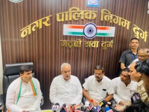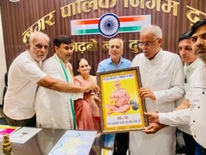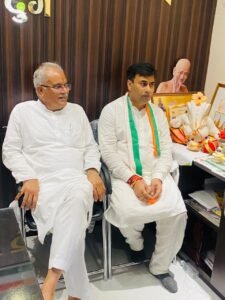 छत्तीसगढ़ के पूर्व मुख्यमंत्री भूपेश बघेल विधायक देवेंद्र यादव की गिरफ्तारी के विरोध में जिला कांग्रेस कमेटी दुर्ग के द्वारा आयोजित धरना प्रदर्शन में शामिल हुए। तत्पश्चात दुर्ग के महापौर धीरज बाकलीवाल के निवास में भोजन किया एवं कार्यकर्ताओं व पार्षदों से भेंट मुलाकात की। उनके आगमन पर महापौर धीरज बाकलीवाल के माता-पिता ने भूपेश बघेल जी को तिलक लगाकर शाल श्रीफल भेंट कर उनका स्वागत किया। एवं भूपेश बघेल जी को आचार्य विद्यासागर जी की एक स्मृति चिन्ह धीरज बेकलीवाल के द्वारा भेंट की गई।