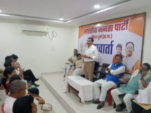 दुर्ग जिला भाजपा अध्यक्ष सुरेन्द्र कौशिक, भिलाई जिला भाजपा अध्यक्ष पुरुषोत्तम देवांगन, निगम सभापति श्याम शर्मा जिला उपाध्यक्ष शिवेंद्र परिहार मंचस्थ रहे। बैठक का संचालन जिला महामंत्री दिलीप साहू ने किया एवं आभार प्रदर्शन जिला महामंत्री विनोद अरोरा ने किया।आयोजित बैठक में जिला उपाध्यक्ष सरिता मिश्रा राजीव पांडेय मंत्री गायत्री वर्मा, गिरेश साहू, शैलेंद्र शैंडे, सह कोषाध्यक्ष ध्रुव सचदेव कार्यालय मंत्री सैयद आसिफ अली सह कार्यालय मंत्री राहुल पंडित प्रवक्ता दिनेश देवांगन मीडिया प्रभारी राजा महोबिया, सोशल मीडिया प्रभारी रजनीश श्रीवास्तव, आईटी सेल जिला संयोजक जितेंद्र सिंह राजपूत, मंडल भाजपा अध्यक्ष महेंद्र अरोरा, कमलेश फेकर, बंटी चौहान, कौशल साहू, मनमोहन शर्मा, अनुपम साहू, राजू जंघेल, मंडल महामंत्री भुपेंद्र साहू, रितेश शर्मा ,जय श्री राजपूत सुमन वर्मा उमेश गिरी ताम्रध्वज साहू राजू साहू भूपेंद्र साहू एमआईसी सदस्य नीलेश अग्रवाल शेखर चंद्राकर काशीराम कोसरे शिव नायक मनीष साहू उपस्थित रहे |