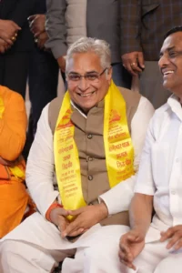 बागेश्वर बाबा के दरबार में पहुंचे वरिष्ठ नेता अरुण वोरा, प्रदेश की सुख-समृद्धि की कामना