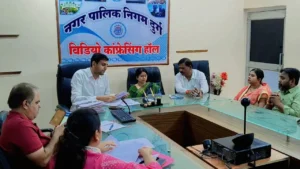 दुर्ग। नगर पालिक निगम के डाटा सेंटर स्थित वीडियो कॉन्फ्रेंसिंग हॉल में आज महापौर अलका बाघमार एवं आयुक्त सुमित अग्रवाल द्वारा शहर में संचालित विकास कार्यों की व्यापक समीक्षा बैठक आयोजित की गई। बैठक में लोक कर्म प्रभारी देवनारायण चंद्रकार, एमआईसी सदस्य लीना दिनेश देवांगन, शेखर चंद्रकार,नीलेश अग्रवाल, ज्ञानेश्वर ताम्रकार, कार्यपालन अभियंता विनीता वर्मा एवं भवन अधिकारी प्रकाश चंद थवानी सहित संबंधित विभागों के अधिकारी उपस्थित रहे।