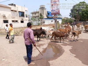 दुर्ग। नगर पालिक निगम सीमा क्षेत्र अंतर्गत शहर के मुख्य मार्गों एवं बाजार क्षेत्रों में आवारा मवेशियों के कारण नागरिकों को हो रही असुविधा और संभावित दुर्घटनाओं को देखते हुए दुर्ग नगर निगम द्वारा विशेष अभियान प्रारंभ किया गया है। इस पहल का उद्देश्य शहर में यातायात व्यवस्था को सुचारू बनाना और आमजन की सुरक्षा सुनिश्चित करना है।