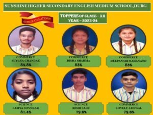 सनशाईन हायर सेकंडरी स्कूल दुर्ग के 10वीं में शत प्रतिशत बच्चे पास, 12वीं में 95% रहा परिणाम