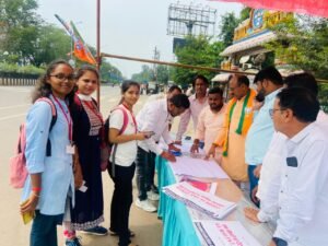 पीएससी मामले में कांग्रेस सरकार पर घोटाले का आरोप लगाते हुए दुर्ग जिला भाजपा अध्यक्ष जितेंद्र वर्मा और भारतीय जनता युवा मोर्चा के जिलाध्यक्ष अध्यक्ष जीत हेमचंद यादव के नेतृत्व में मंगलवार को दुर्ग के साइंस कॉलेज के बाहर हस्ताक्षर अभियान चलाया गया। इस दौरान युवाओं को इस अभियान में जुड़कर कांग्रेस सरकार द्वारा किए गए पीएससी घोटाले के भ्रष्टाचार के विरोध में अपना हस्ताक्षर करने अपील की गई। जिसके तहत बड़ी संख्या में कॉलेज के बाहर लगे पंडाल पर युवा पहुंच अपना हस्ताक्षर करते नजर आए।