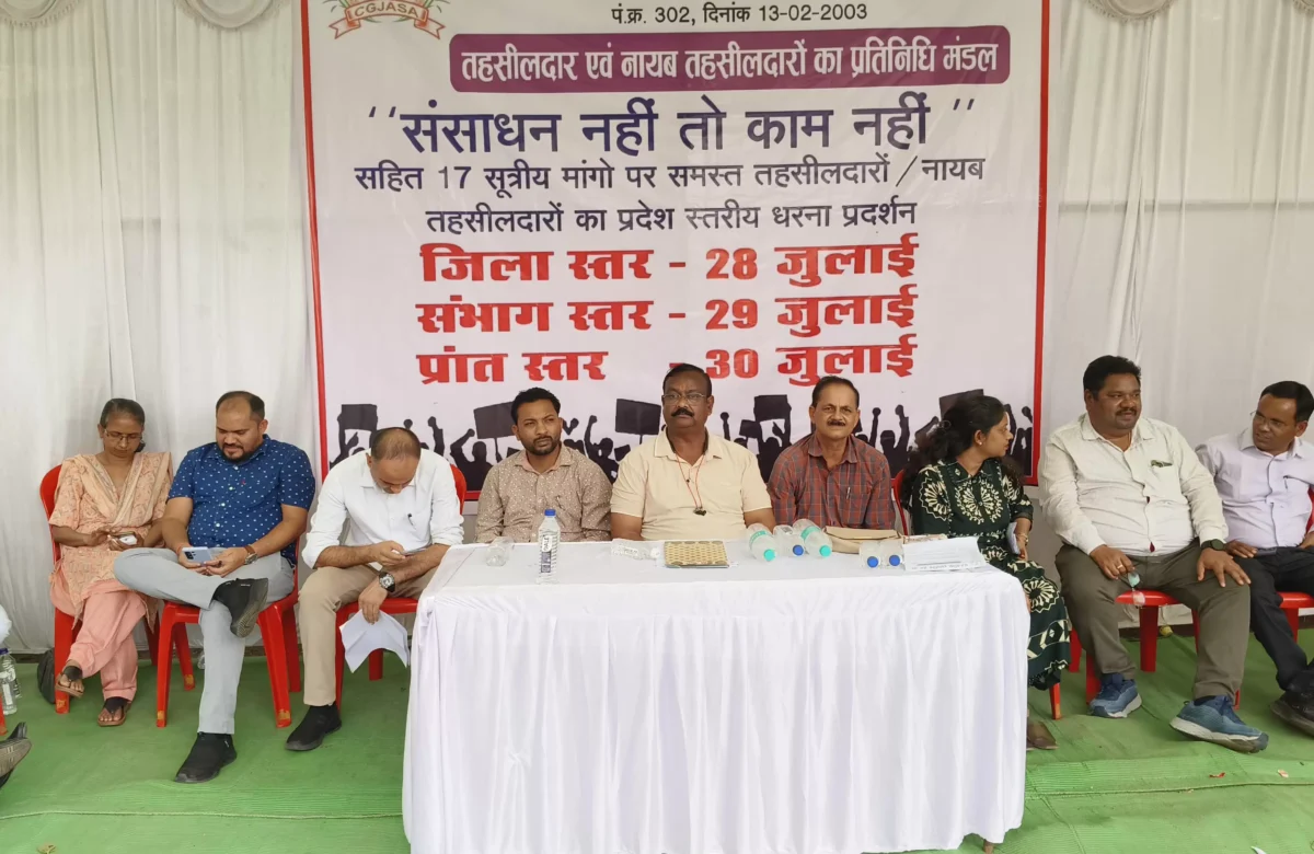 ट्राई सिटी एक्सप्रेस। न्यूज दुर्ग । छ.ग. कनिष्ठ प्रशासनिक सेवा संघ के बैनरतले तहसीलदार एवं नायब तहसीलदारों ने प्रदेशव्यापी धरना-प्रदर्शन के तहत संसाधन नहीं