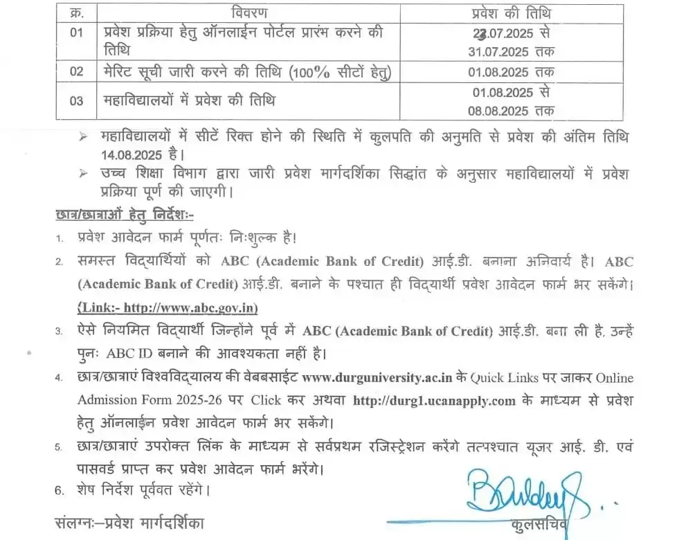 ट्राई सिटी एक्सप्रेस। न्यूज हेमचंद यादव विश्वविद्यालय से सम्बद्धता प्राप्त महाविद्यालयों में सत्र 2025-26 के एम.एड. प्रथम सेमेस्टर पाठ्यक्रमों में नियमित प्रवेश के इच्छुक विद्यार्थियों