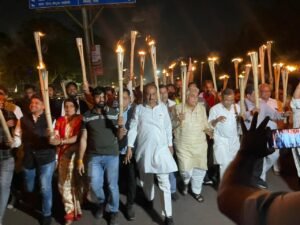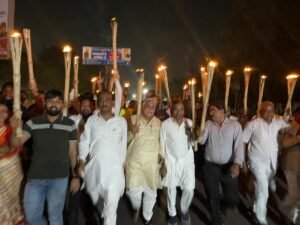 कांग्रेस का जय भारत सत्याग्रह आंदोलन लगातार चलता रहेगा। आज मशाल रैली निकली है। आगे भी आंदोलन होते रहेंगे। रैली में राज्य मदरसा बोर्ड के अध्यक्ष अल्ताफ अहमद, राजकुमार पाली, अजय मिश्रा, राजकुमार साहू, महीप सिंह भुवाल, कन्या ढीमर, विवेक मिश्रा, अनूप वर्मा, संदीप वोरा सहित जिला कांग्रेस के सभी पदाधिकारी एनएसयूआई, युवा कांग्रेस व कांग्रेस के सभी प्रकोष्ठ के पदाधिकारी उपस्थित रहे।