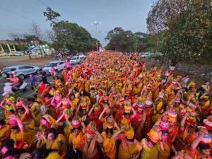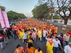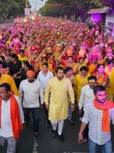 भिलाई। जीवन आनंद फाउंडेशन व श्रीराम जन्मोत्सव समिति द्वारा सिविक सेंटर, जयंती स्टेडियम के समीप अंतर्राष्ट्रीय कथावाचक पंडित प्रदीप मिश्रा जी के श्रीमुख से श्री शिव महापुराण कथा का आयोजन 25 अप्रैल से 1 मई तक किया जा रहा है। जिसका शुभारंभ आज भव्य कलश यात्रा से की गई, जिसमें हजारों श्रद्धालु शामिल हुए। यात्रा में हजारों की संख्या में महिलाओं ने सिर पर कलश धारण कर पूरे सेक्टर -5 से कथास्थल सिविक सेंटर तक भ्रमण किया। कलश यात्रा में महाराष्ट्र एवं उड़ीसा के ढोल धमाल के साथ राउत नाचा समूह भी शामिल हुआ। इस दौरान हर-हर महादेव के जयकारों के साथ कलश यात्रा सेंट्रल एवेन्यू होते हुए कथास्थल पहुंची। कलश यात्रा के दौरान भिलाईवासियों का उत्साह देखते ही बन रहा था। कथावाचक पंडित श्री प्रदीप मिश्रा का भिलाई आगमन 24 अप्रैल को हो रहा है, आयोजन समिति द्वारा उनका भव्य स्वागत किया जायेगा।