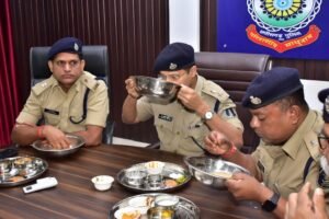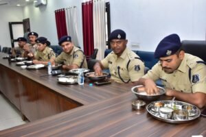 मजदूर दिवस पर बोरे बासी का लुत्फ उठाते पुलिस अधीक्षक डॉ. अभिषेक पल्लव